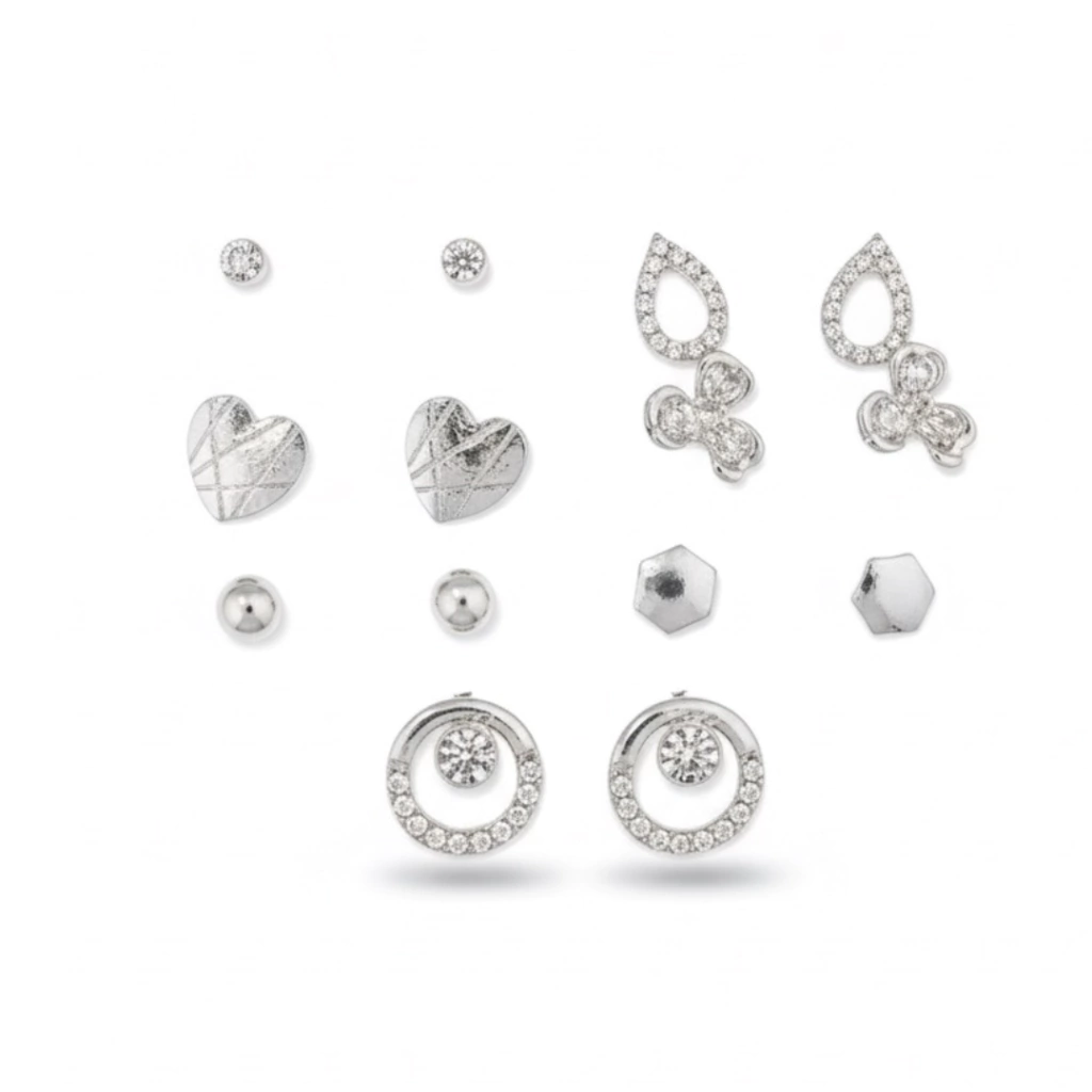 Kit de brincos semaninha composto por 7 pares diferentes para cada dia da semana, todos banhados em tom prateado com detalhes delicados que combinam modernidade e sofisticação. O conjunto traz modelos variados incluindo pontos de luz, corações, folhas geométricos e argolinhas com strass, oferecendo versatilidade para criar looks do dia a dia até produções mais elegantes. Uma opção perfeita para quem ama variedade e gosta de mudar o estilo diariamente.